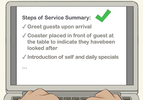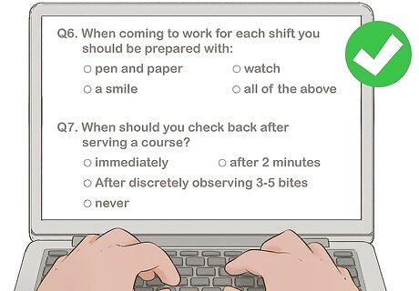 Test the participants’ knowledge at the end. It’s essential to find out if your training materials are effective, and the best way to do that is to see how much your employees have learned. Develop a quiz or activity to see if participants are learning what they are intended to, and adjust the training materials if you find that they aren’t. For instance, each employee could complete a mock transaction on a point of sale system.