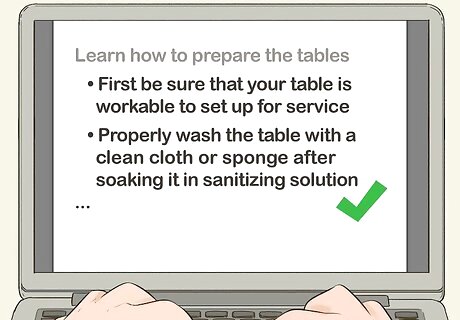 Gather or prepare any additional resources you will need. If you will present your employees with a training manual, you will simply need to print and bind enough copies for every employee. If you plan to give a presentation to employees, you will need a space to present and seating for the participants, at the very least. Additionally, you will need to designate a person or people to present the training material and figure out the logistics of the sessions, such as the time and place.