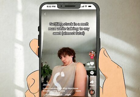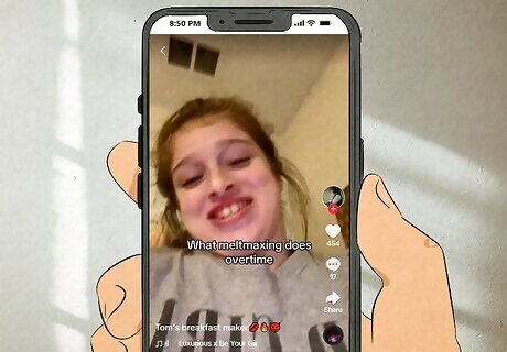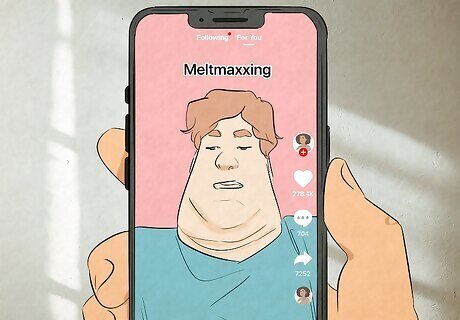 Pull a slack-jawed, silly expression with your face. A lot of meltmaxxing videos you’ll see also involve the posters crossing their eyes and letting their facial features relax or droop as much as possible to add to the overall “melting” effect. If you want to go all in on the meltmaxxing trend, you can try pulling a funny, melted expression, too!