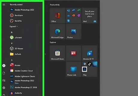 Find your programs on the Start menu. Running along the left side of the menu, you'll find your app list. At the top of the list, you'll see your most recently-installed applications. Scroll down the list to find a list of all applications on your computer in alphabetical order. Clicking or tapping an application in the list will open that application on your computer. Tip: Need to find a program? Just start typing its name to search for it.