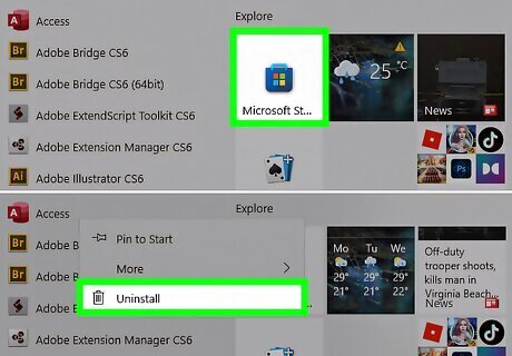 Install and uninstall apps. If you see an application on the Start menu that you don't want to keep, you can easily uninstall it from the menu. Similarly, you can use the Microsoft Store tile to find new apps and install them on your PC, which adds them to the Start menu. To uninstall an app from the Start menu, right-click the app, select Uninstall, and follow the on-screen instructions. To install an app, open the Start menu, click the Microsoft Store tile, and browse or search for an app. When you find a program you want, click Get (if it's free) or its price. Then, follow the on-screen instructions to install the app.